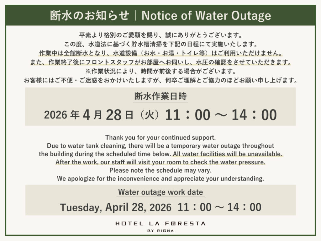 4月28日(火)断水のお知らせ